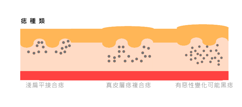 雷射除痣方式,對皮膚產生汽化作用,瞬間剝離表皮組織,達到去除黑色素及老舊組織的作用。