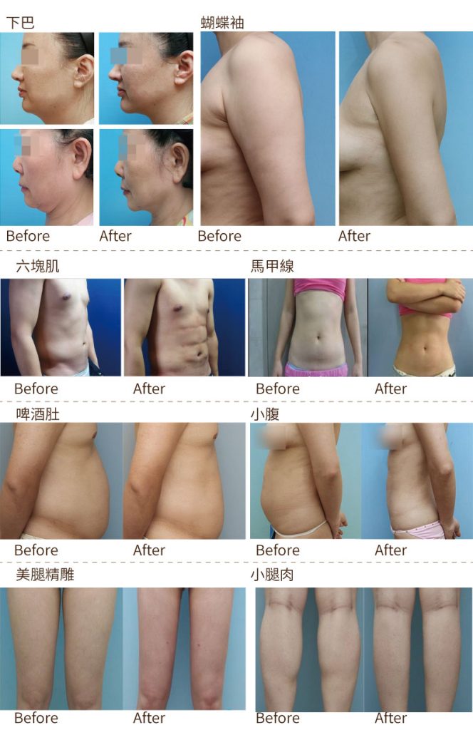 適用於: 雙下巴、蝴蝶袖、腹部、腰側、背部、臀部、大腿、男性女乳症等。 精雕馬甲線、水蛇腰、蜜桃臀、六塊肌丶人魚線等。
